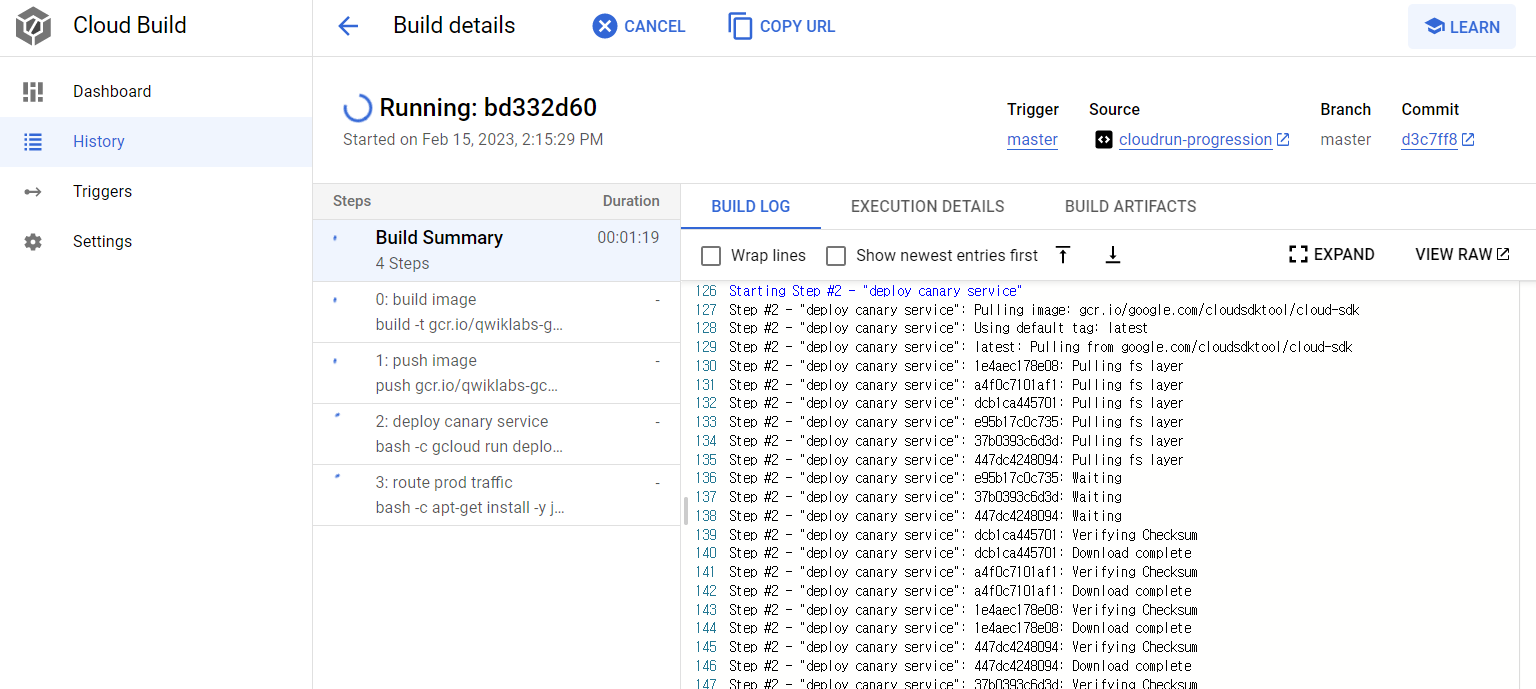 Trigger가 동작하며 Cloud Run version Update 하여 배포